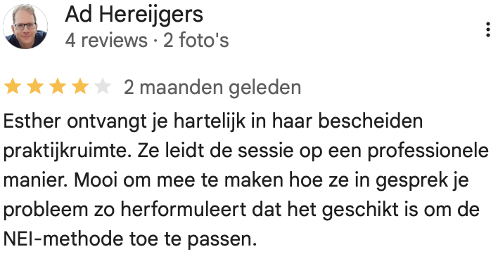 NEI is een methode om emotionele problemen, lichamelijke klachten, onverwerkte incidenten en trauma’s op een vriendelijke manier definitief op te lossen.